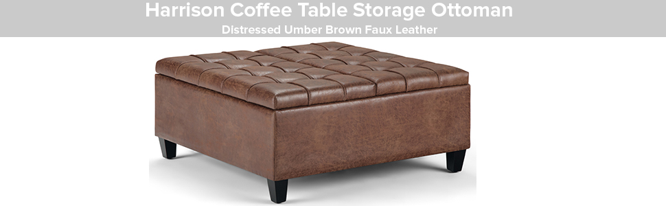 16'' h x 16'' w x 16'' d 30 inch distressed vegan leather, tufted coffee table ottoman. Ships free orders over $39. Simplihome owen 36 inch wide square coffee table lift top storage ottoman, cocktail footrest stool in upholstered distressed saddle brown faux air leather, mid century modern, living room. We pride ourselves on bringing extremely high quality goods to market on amazon at a fair price.